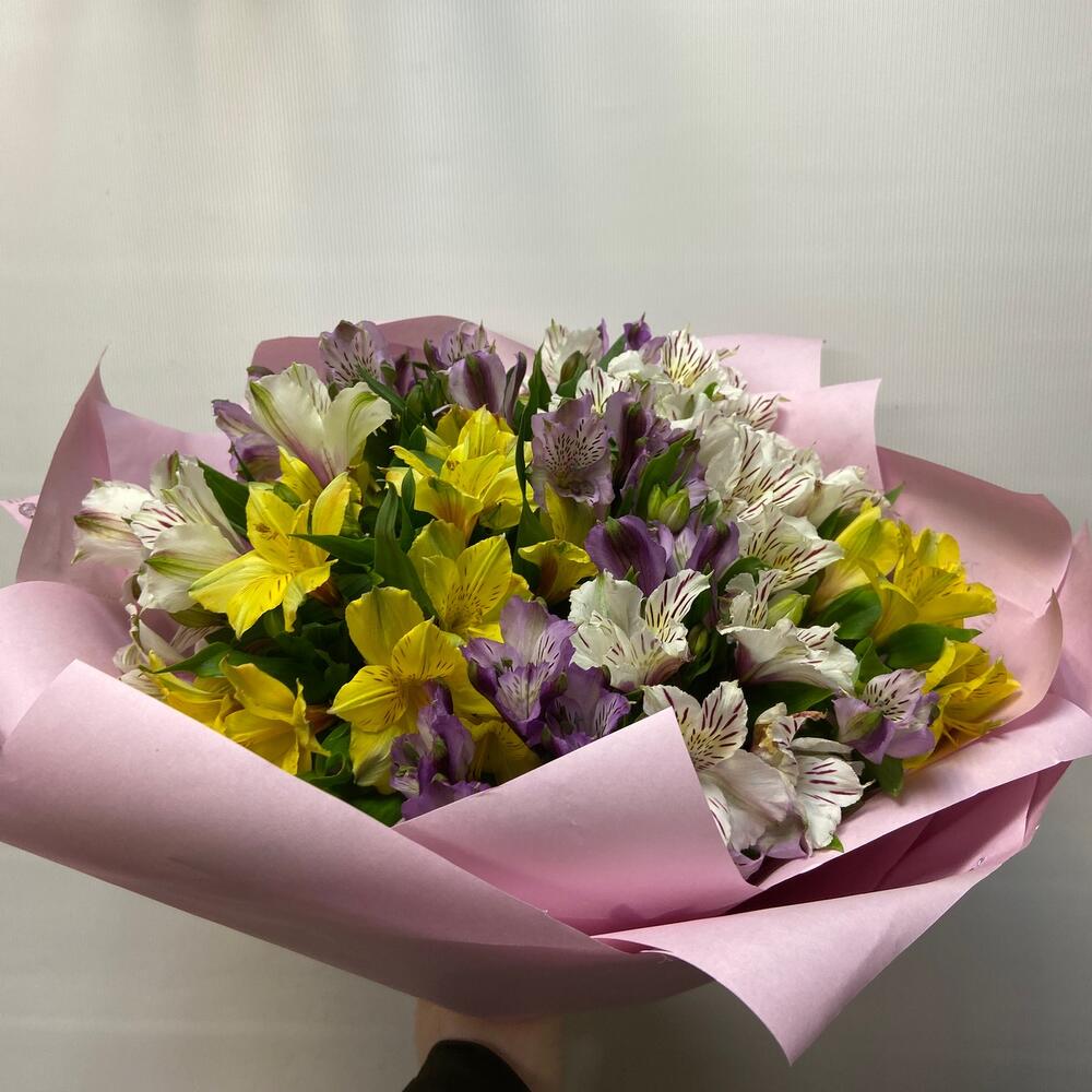 Альстромерия – 13 шт.Упаковка дизайнерская – 1 шт.Лента – 1 шт.