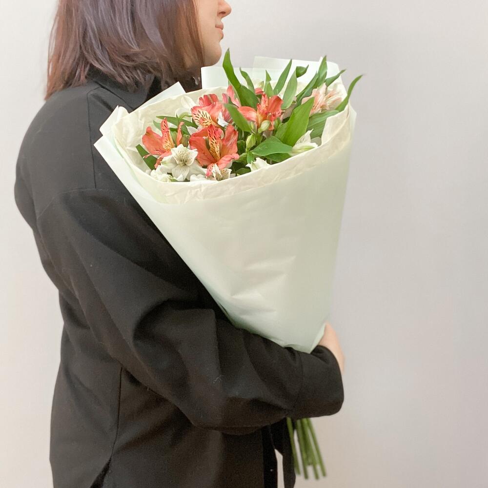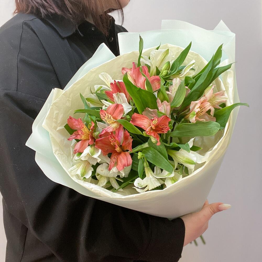 Альстромерия – 7 шт.Упаковка дизайнерская – 2 шт.Лента атласная – 1 шт.