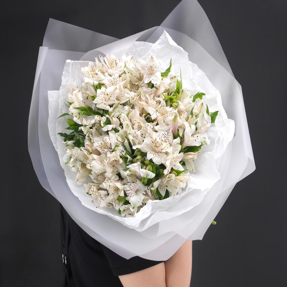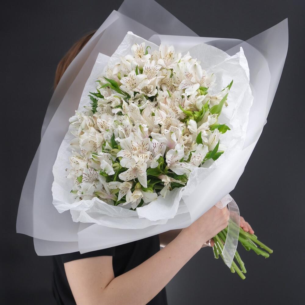 Объемный монобукет из 21 белой альстромерии