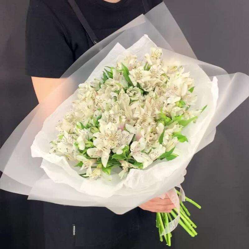 Альстромерия – 21 шт.подкормка для срезанных цветов – 1 шт.инструкция по уходу за цветами – 1 шт.упаковка (тишью и матовая пленка) – 1 шт.