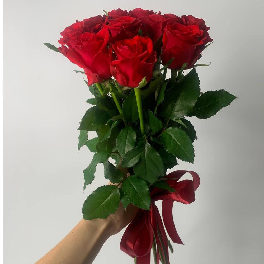 9 червоних троянд під стрічку