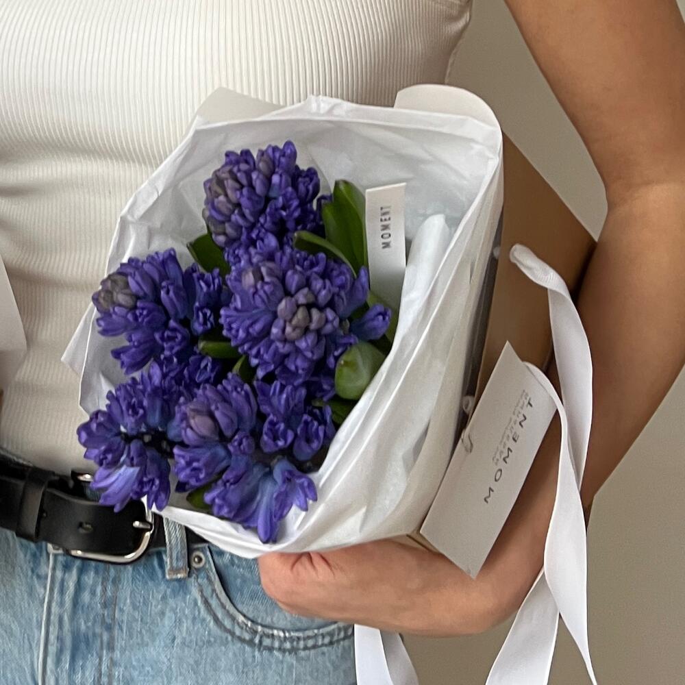 Тишью – 2 шт.Крафт – 2 шт.Карточка для подписи – 1 шт.крафтовый пакет – 1 шт.гиацинты – 5 шт.