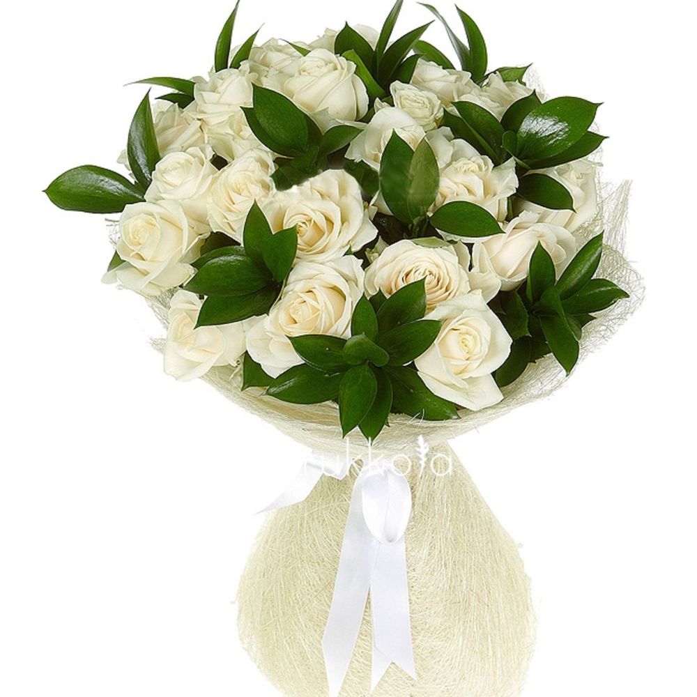 Satin ribbon – 1 шт. Ruscus – 10 шт. rose avalange – 25 шт. sezal – 1 шт.
