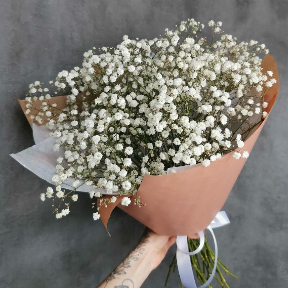 гипсофила белая – 9 шт.Пленка – 2 шт.Лента – 1 шт.