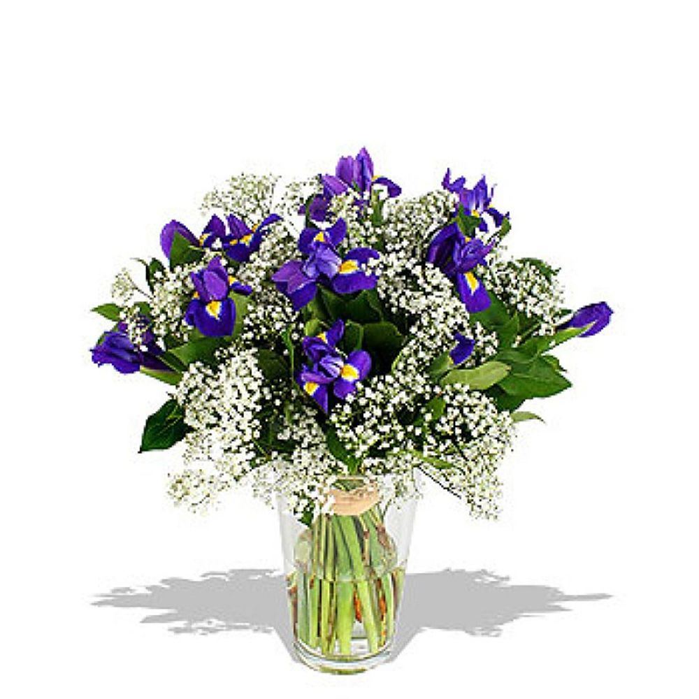 Ирис – 15 шт.Гипсофила – 4 шт.Зелень – 1 шт.Лента – 1 шт.