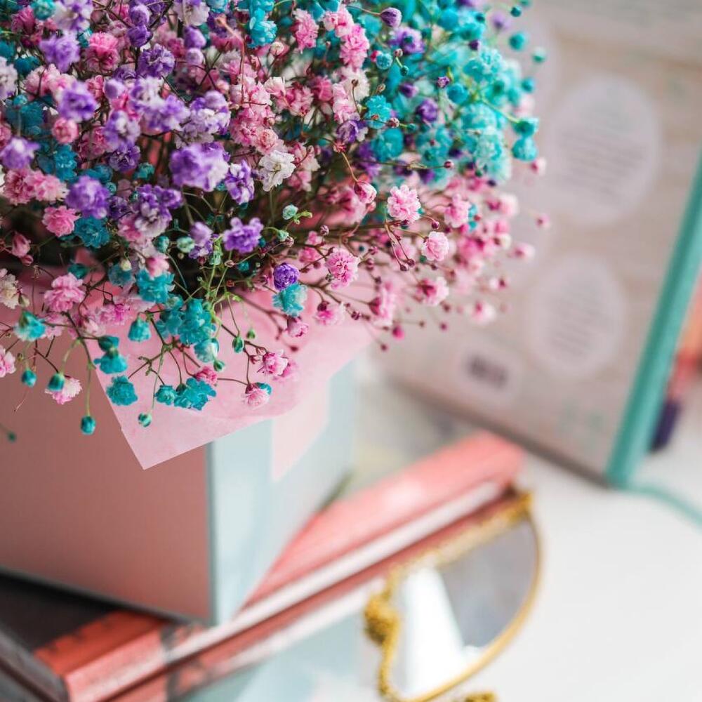 Очаровательная, воздушная композиция из гипсофилы, в коробочке .Цветы стоят в специальной флористической губке,что позволяет им больше оставаться свежими и радовать получателя. Так же композиция в коробке это очень удобно и эффектно, так как не надо ставить букет в вазу и менять воду. Необходимо лишь подливать в губку воду.Инструкция по уходу за цветами прикреплена к каждому заказу.Цветы гипсофилы отличаются стойкостью и даже при высыхании не теряют, декоративности и цвета. Что позволяет, долгое время украшать интерьер в качестве сухоцветов.Подпишем открытку с вашими пожеланиями бесплатно