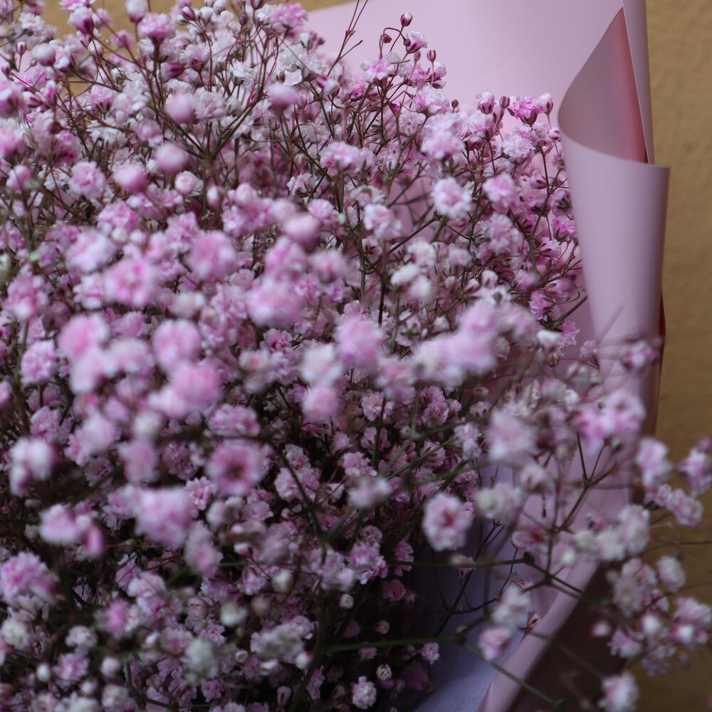 гипсофила розовая эквадор – 5 шт.пленка дизайнерская корейская – 4 шт.Фетр – 3 шт.Лента репсовая – 1 шт.