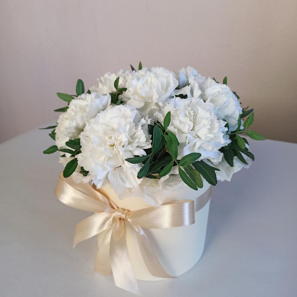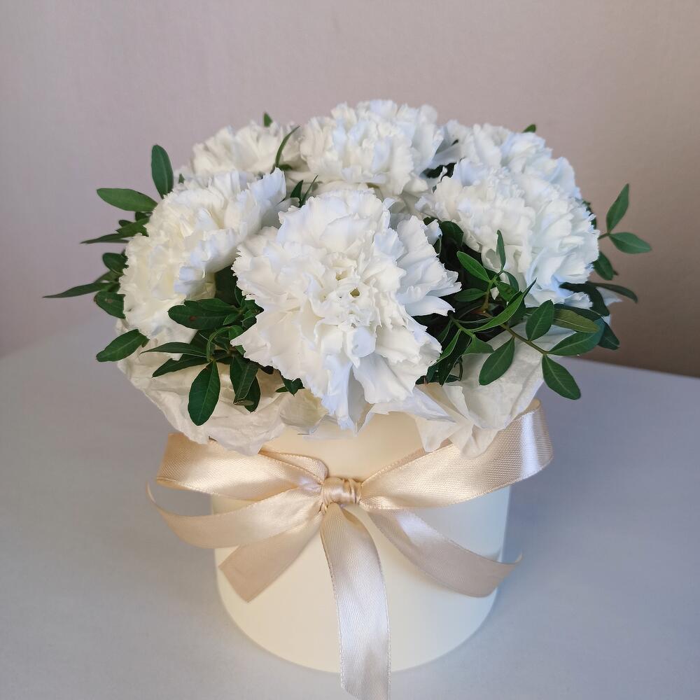 Белые диантусы в коробочке S