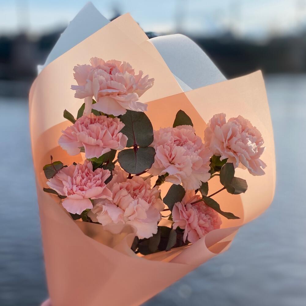 Букет гвоздик с эвкалиптом «Бэлла»