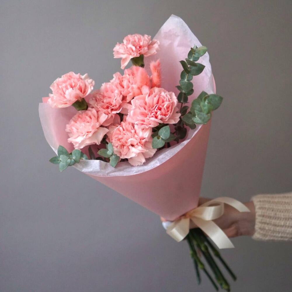15 лавандовых гвоздик с эвкалиптом (букет N 24)