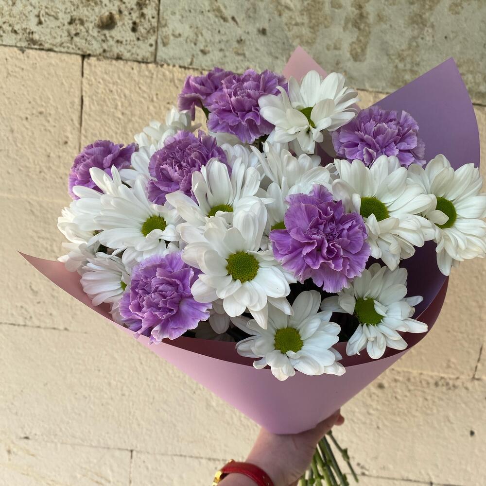 Хризантема кустовая – 4 шт.Упаковка – 1 шт.Гвоздика лунная – 7 шт.