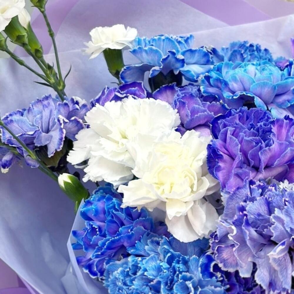 Лента атласная – 1 шт.Тишью – 2 шт.Диантус – 21 шт.Упаковка дизайнерская – 1 шт.Диантус кустовой – 2 шт.
