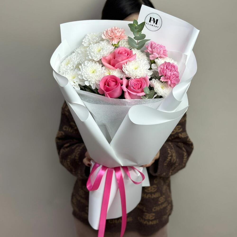Альстромерии, Гвоздики, Кустовые розы, Лизиантусы, Розы, Хризантемы