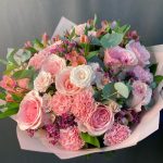Альстромерии, Гвоздики, Кустовые розы, Лизиантусы, Розы, Хризантемы