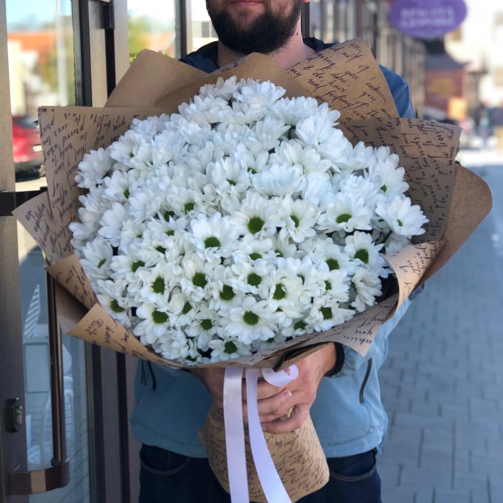 Белоснежная хризантема в стильной упаковке!