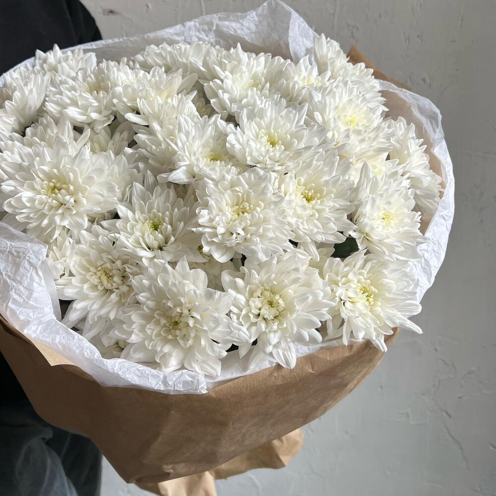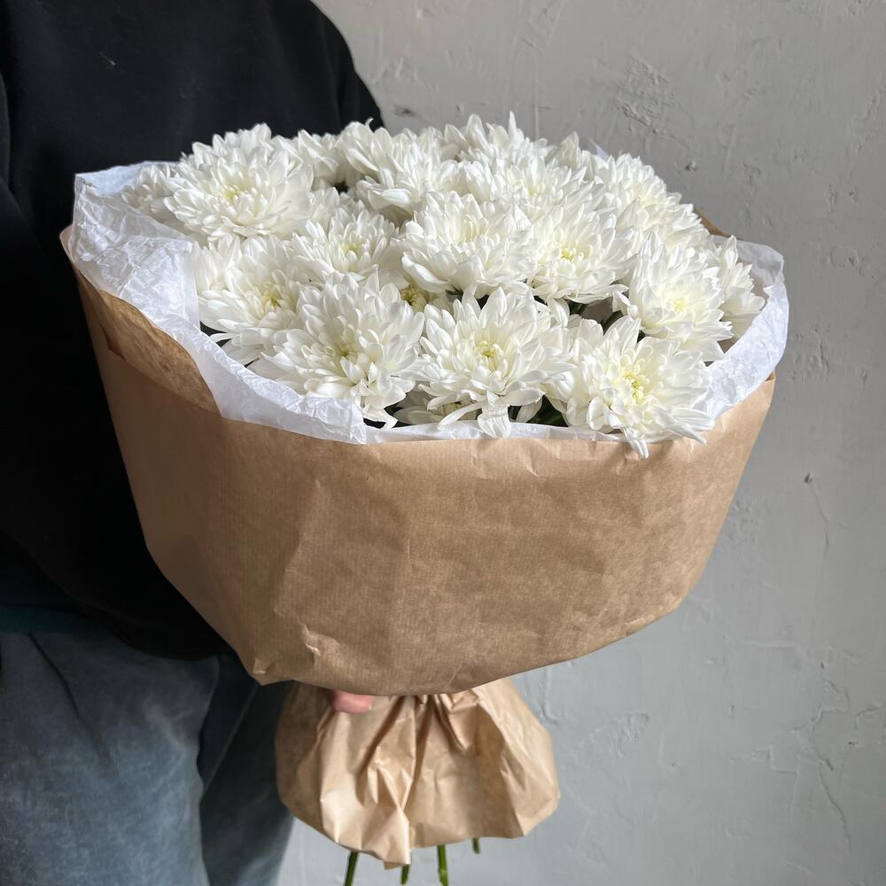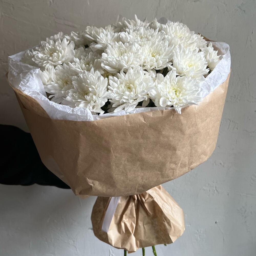 Хризантема кустовая – 9 шт.Лента атласная – 2 шт.Упаковка дизайнерская – 3 шт.