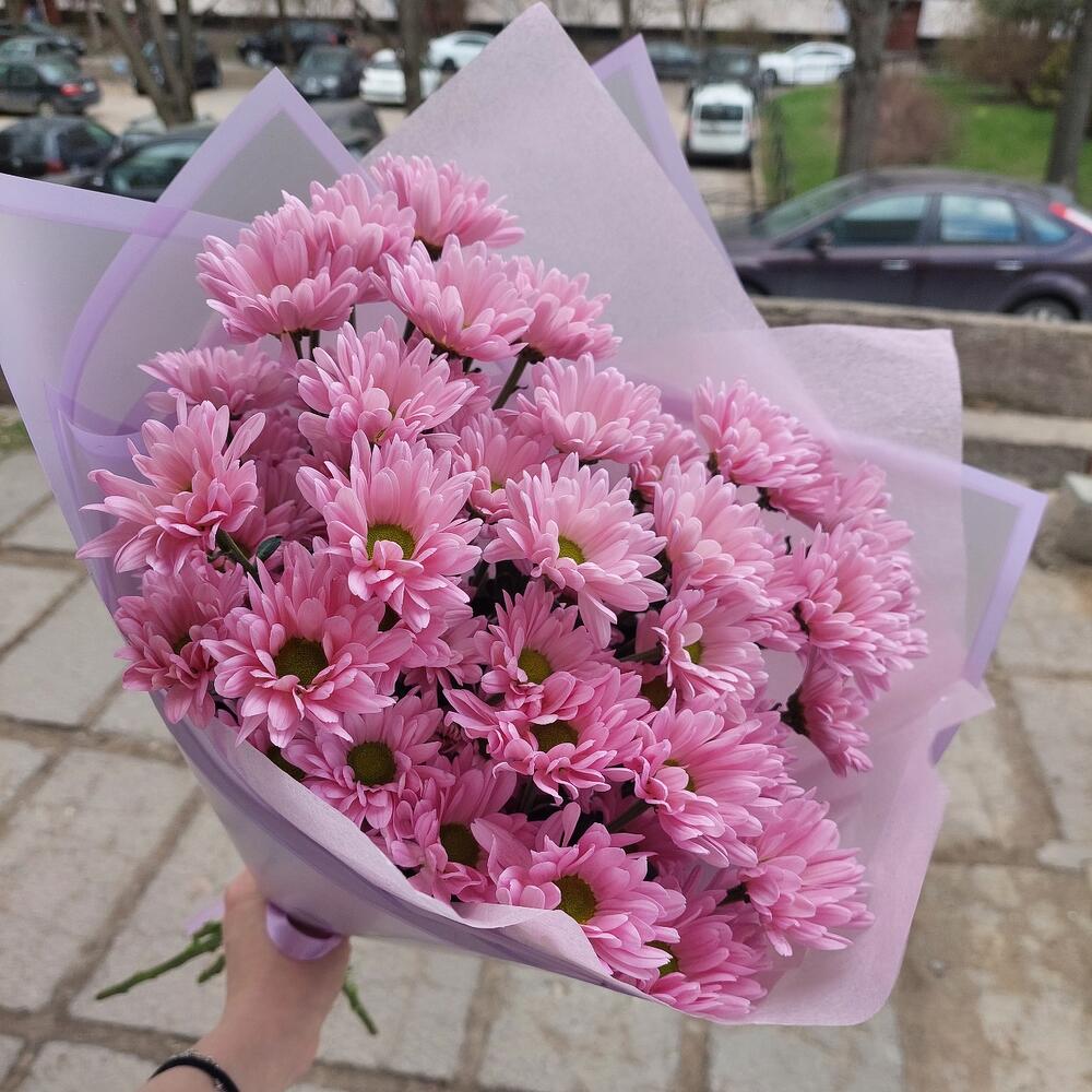 Хризантема – 5 шт.Упаковка дизайнерская – 1 шт.Лента атласная – 1 шт.