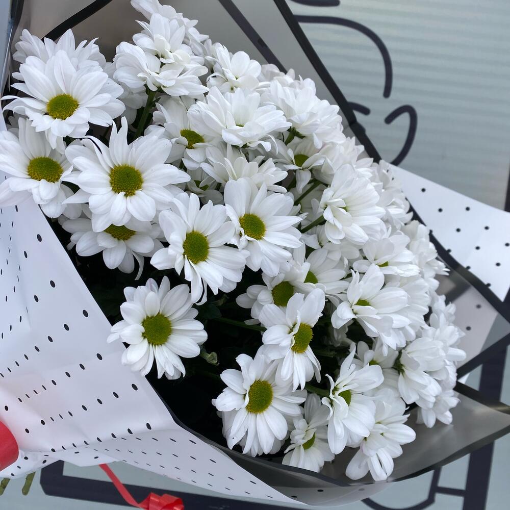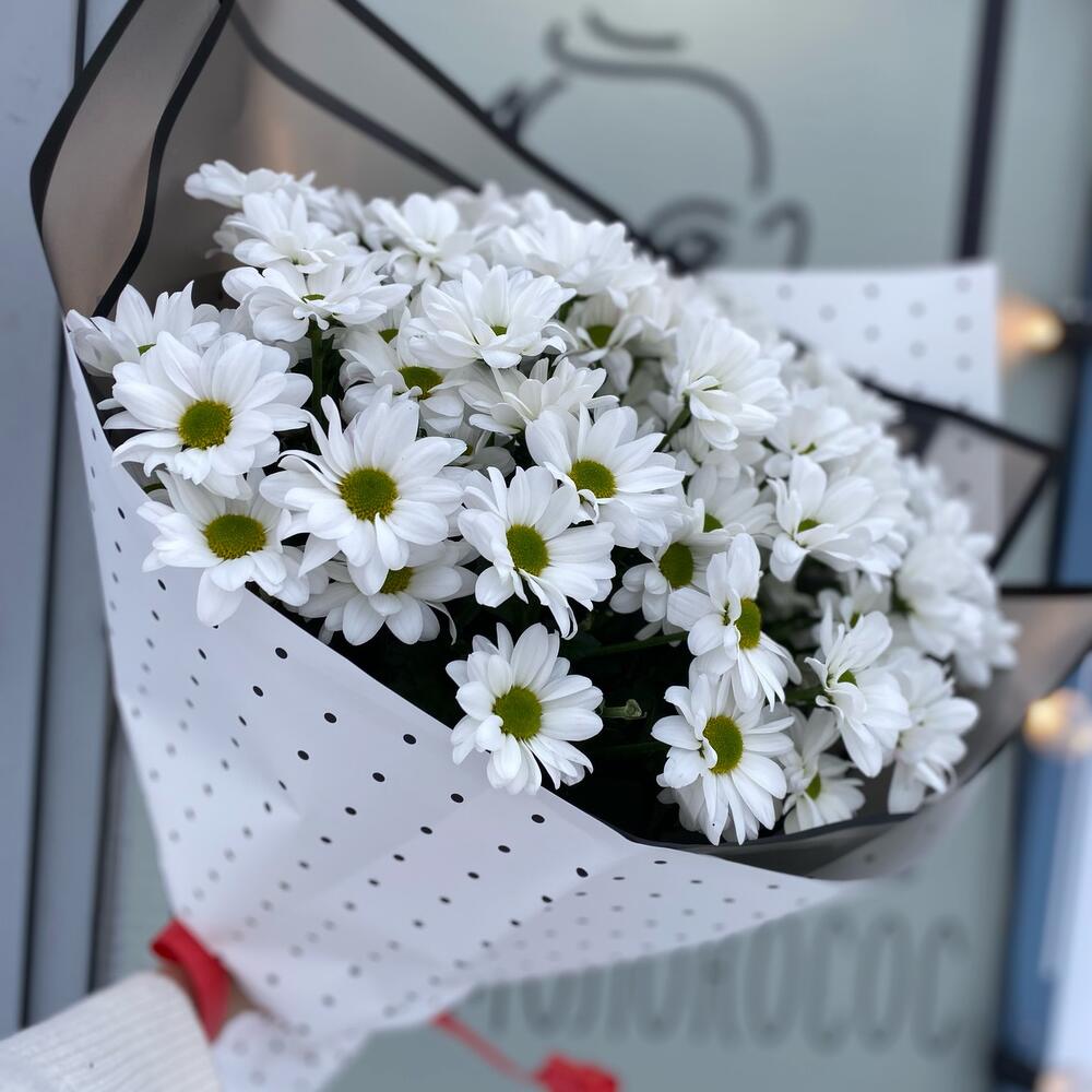 Хризантема кустовая – 9 шт.Упаковка дизайнерская – 2 шт.Лента – 1 шт.