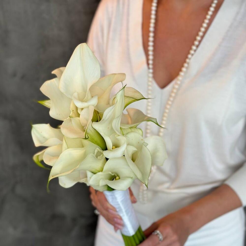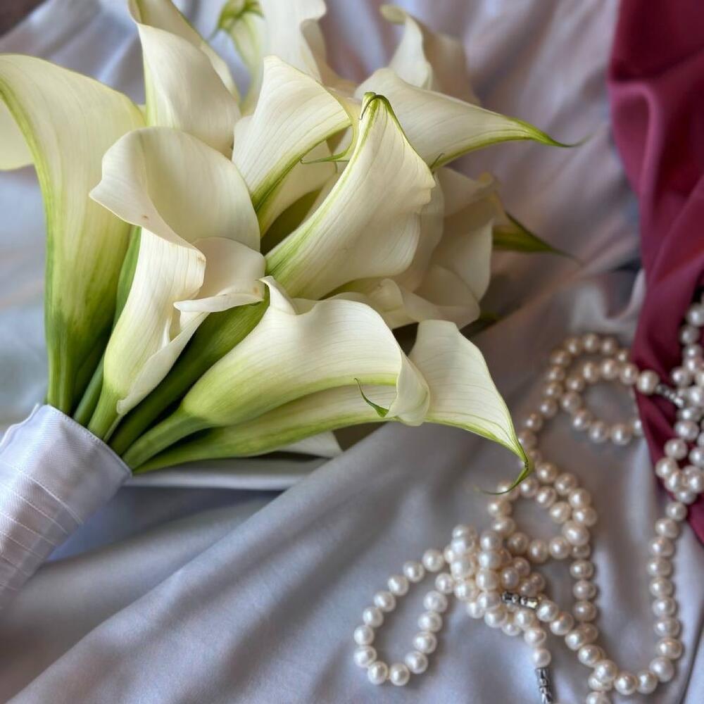 Калла белая – 19 шт.Лента атласная – 1 шт.Средство для продления жизни цветов – 1 шт.Подарочная упаковка – 1 шт.