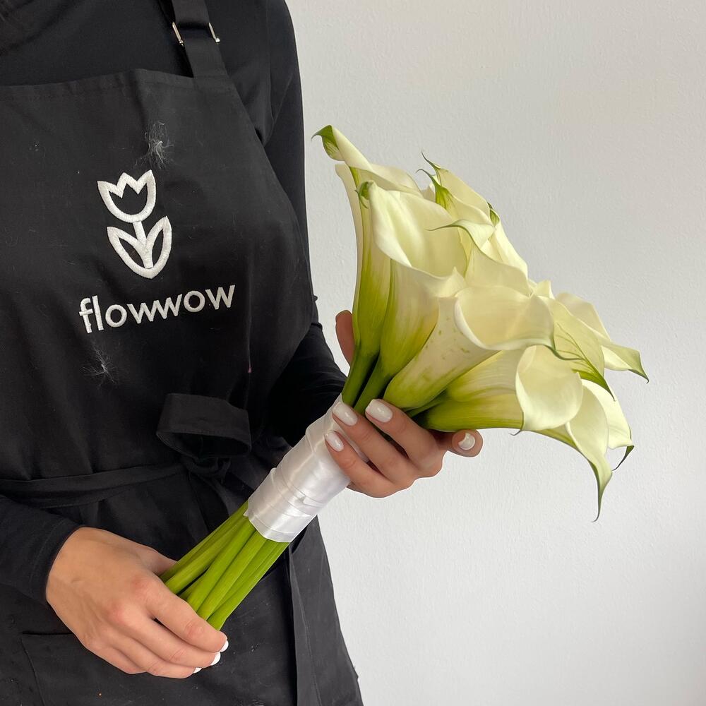 каллы белые – 17 шт.Лента атласная – 1 шт.