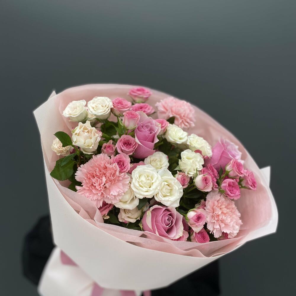 Гвоздики, Кустовые розы, Пионовидные розы, Розы