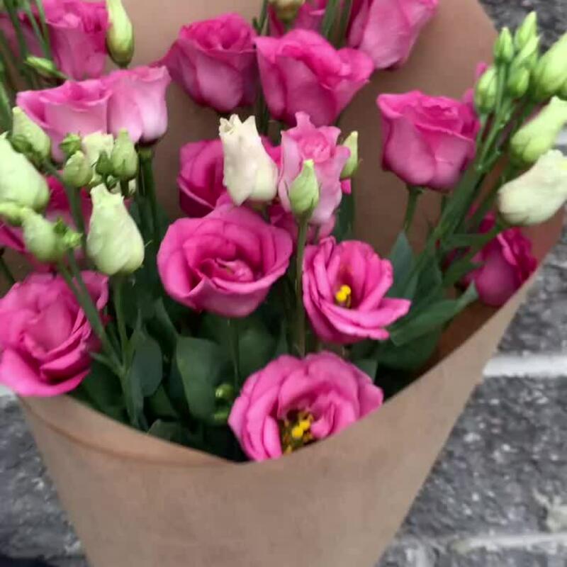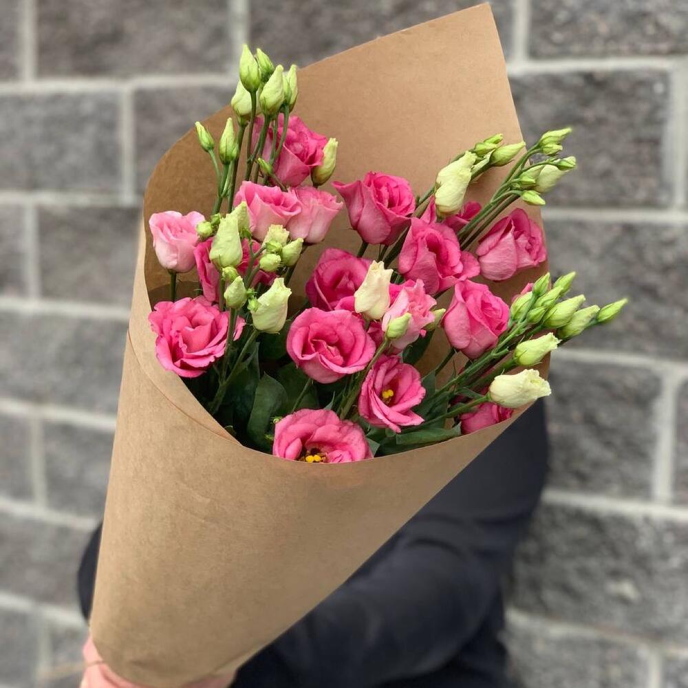 Эустома – 5 шт.Крафт упаковка – 1 шт.бечевка натуральная – 1 шт.