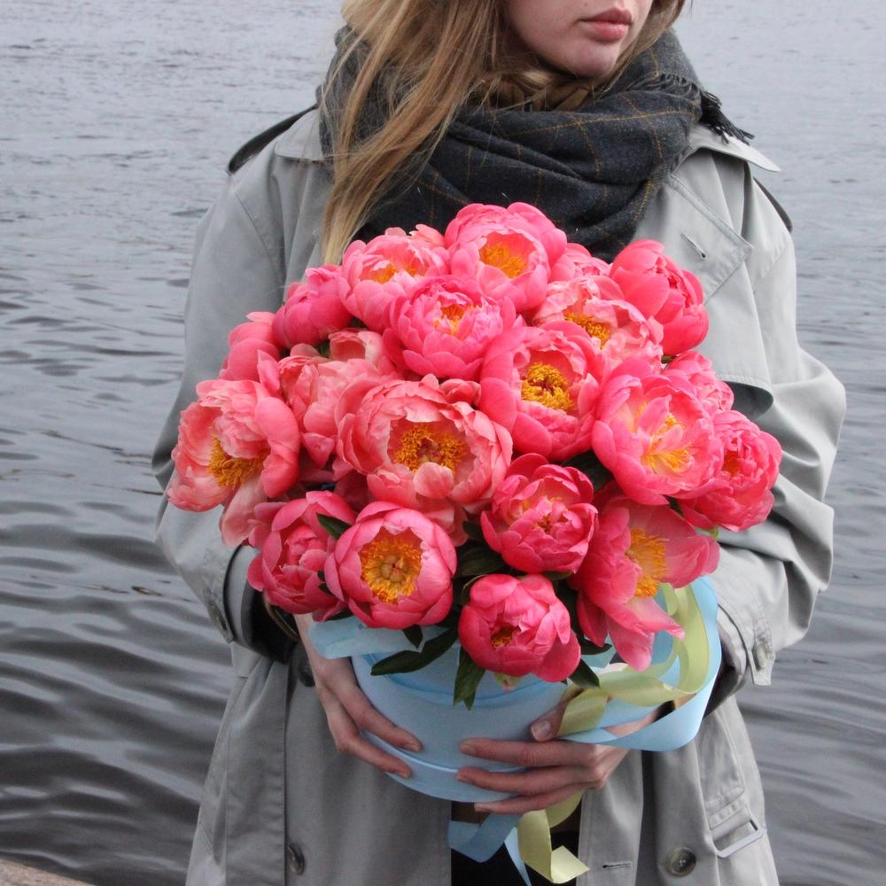 Шарм - шляпная коробка коралловых пионов