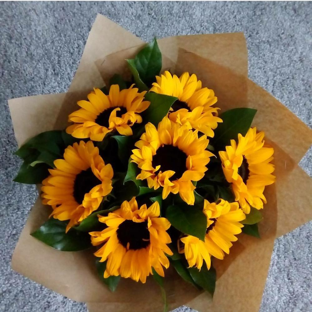 Букет из 7 ярких подсолнуха