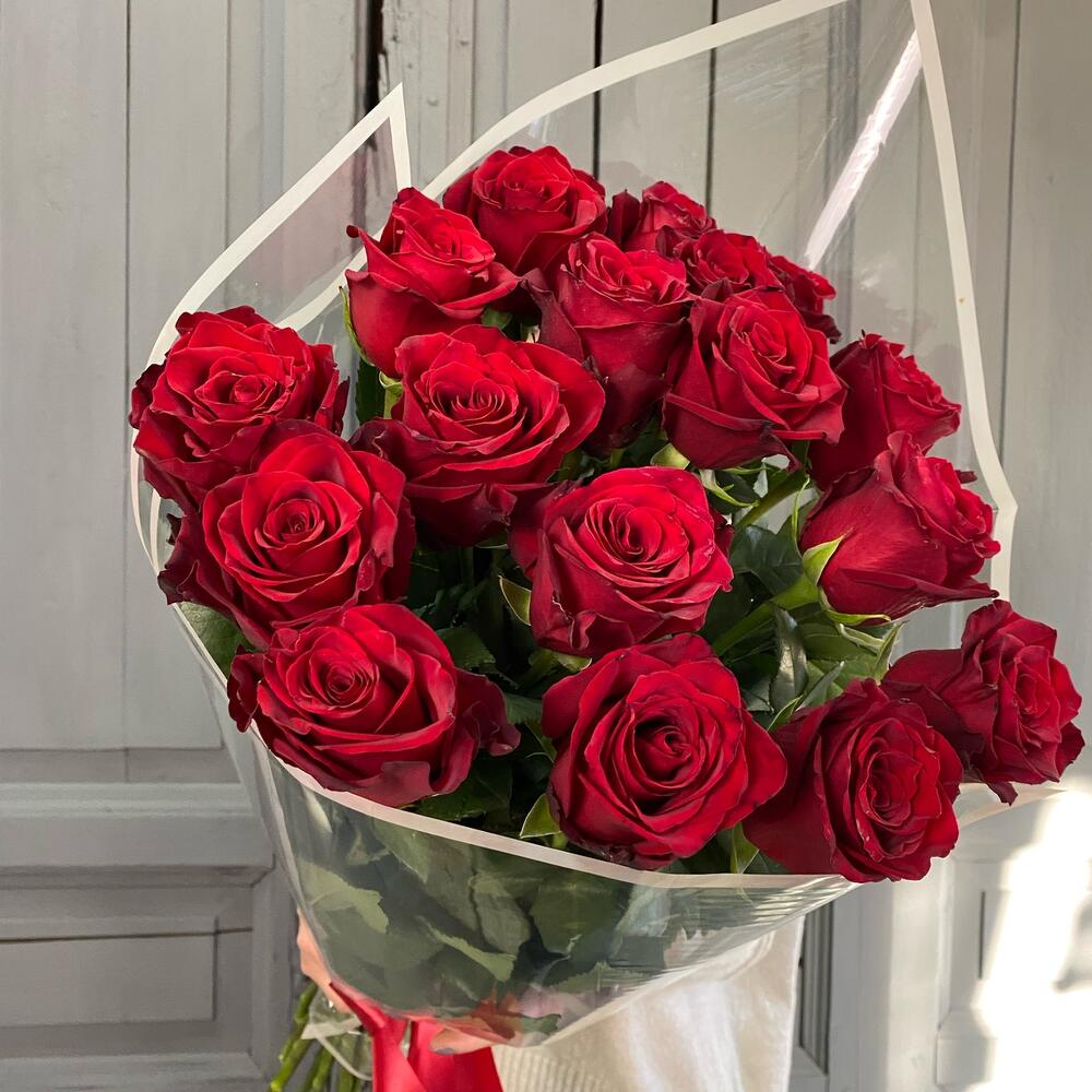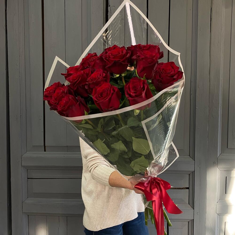 17 красных роз 70 см