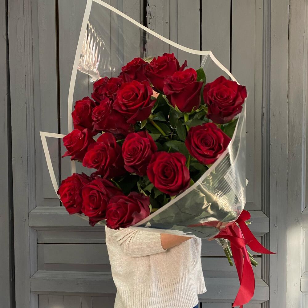 Роза Эквадор – 17 шт.Лента атласная – 1 шт.Упаковка дизайнерская – 2 шт.