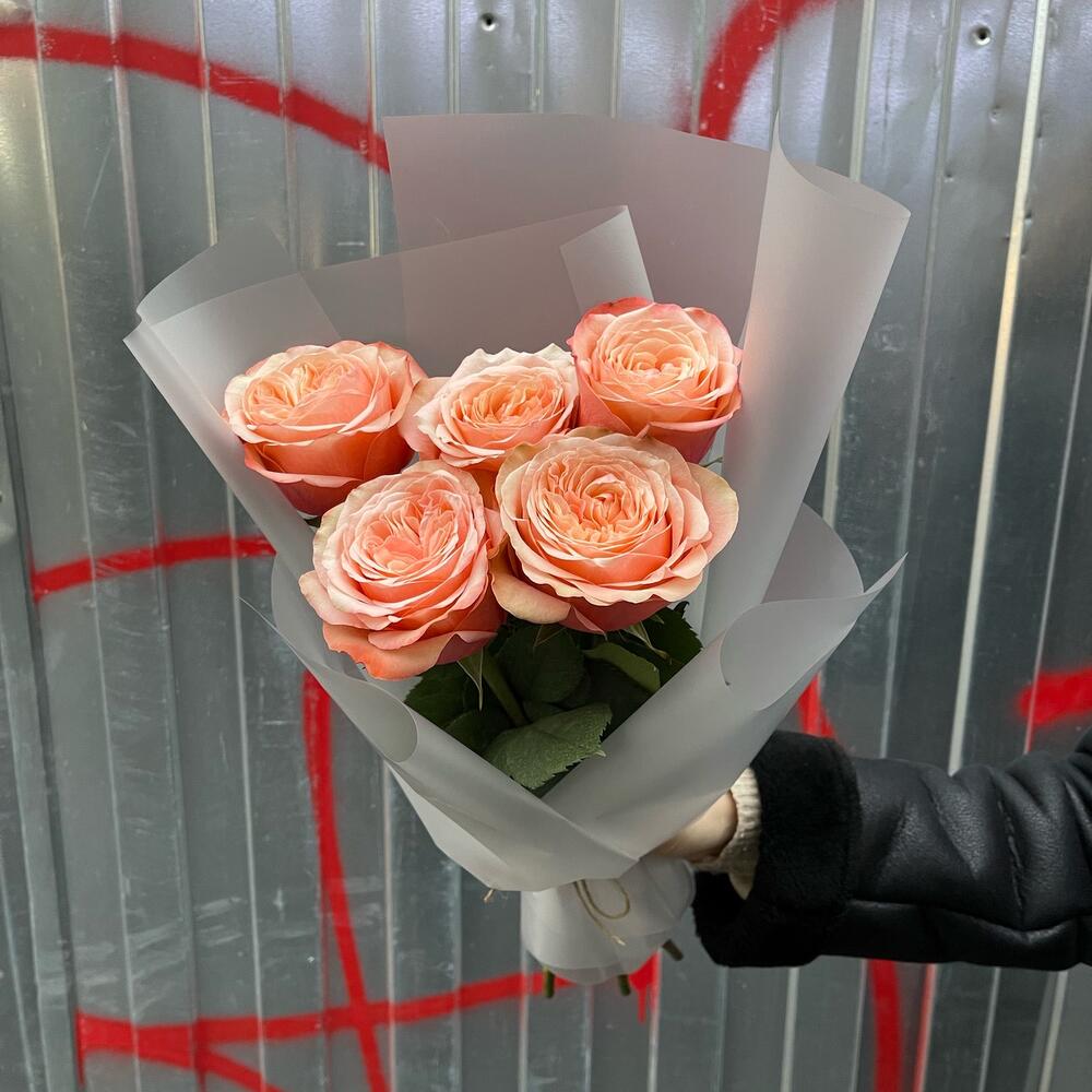 Роза пионовидная – 5 шт.Упаковка дизайнерская – 2 шт.