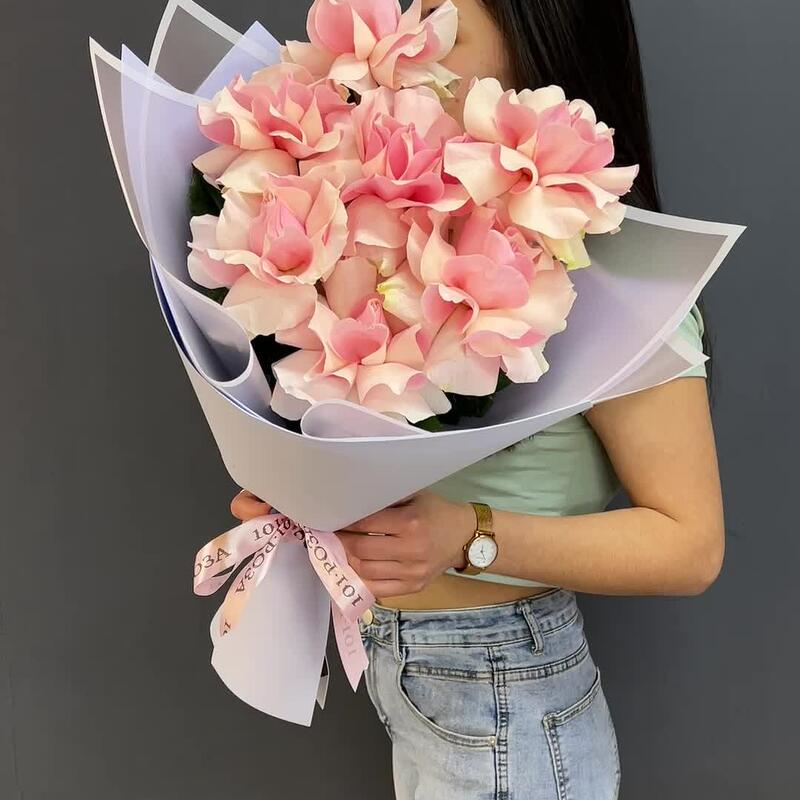 7 нежно-розовых французских роз