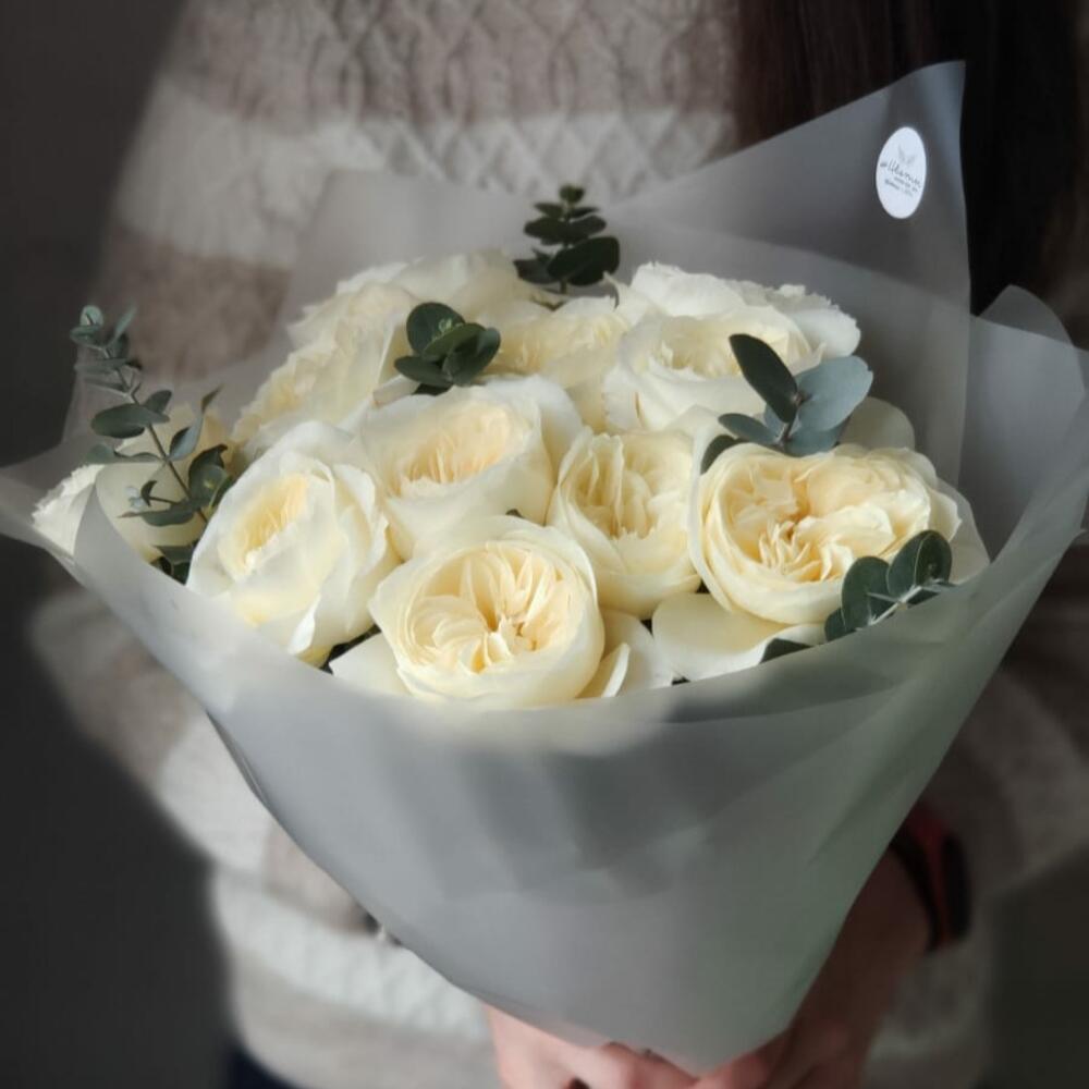 Эвкалипт – 1 шт.Упаковка – 1 шт.Роза садовая – 11 шт.