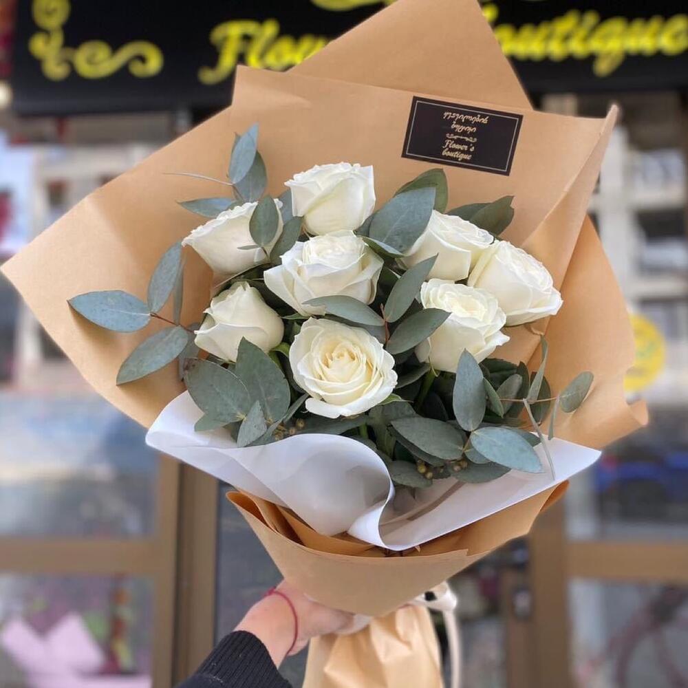 Эвкалипт – 3 шт. розы белые – 9 шт.