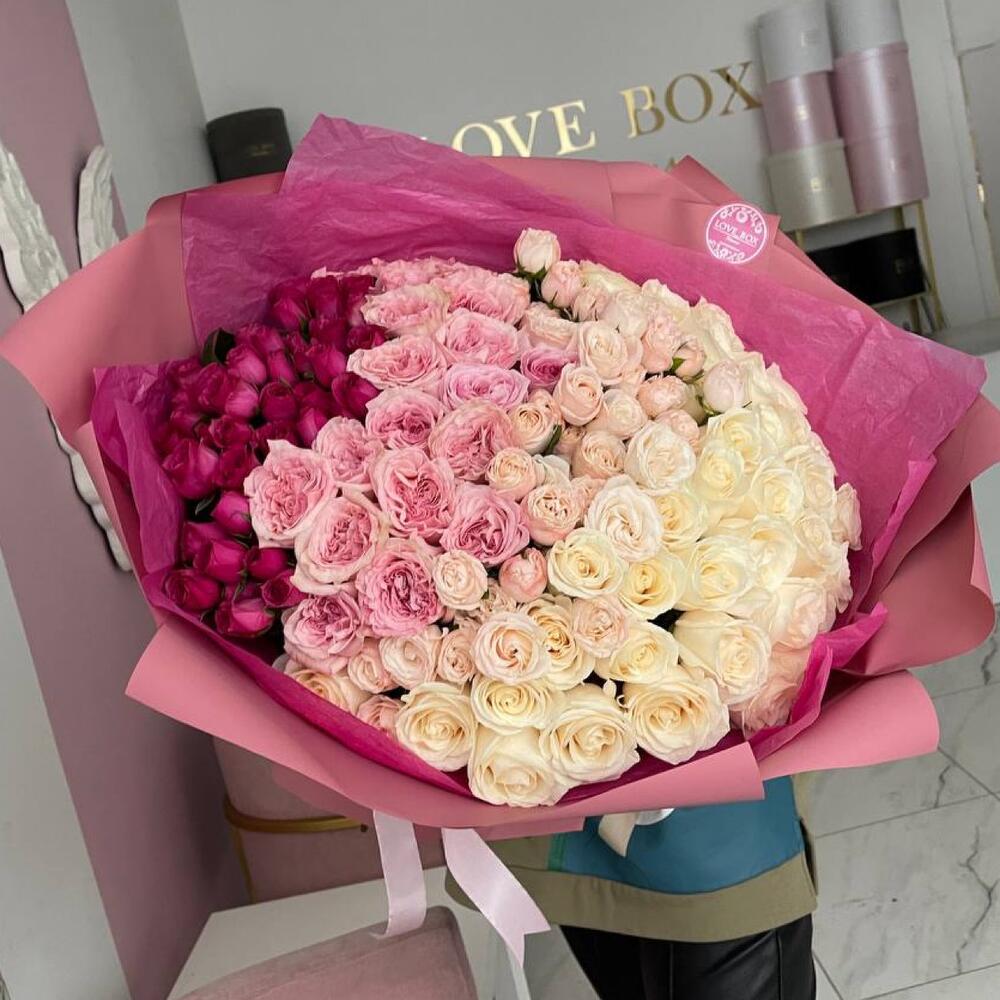Букет градиент с пионовидными и кустовыми розами