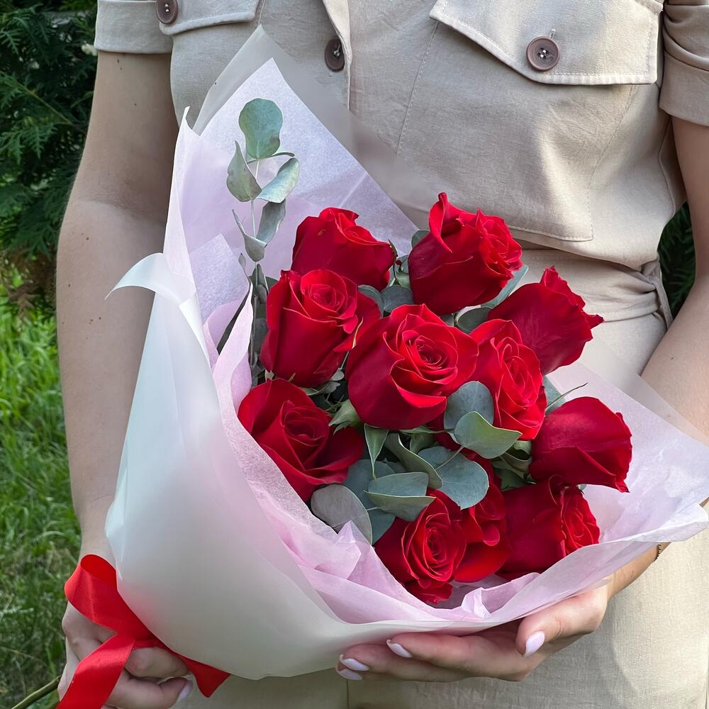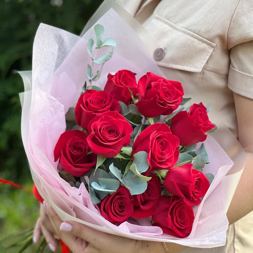 Букет из 11 Роз с эвкалиптом
