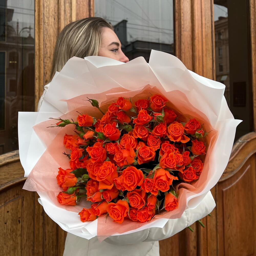 Букет из 15 кустовых роз 60см