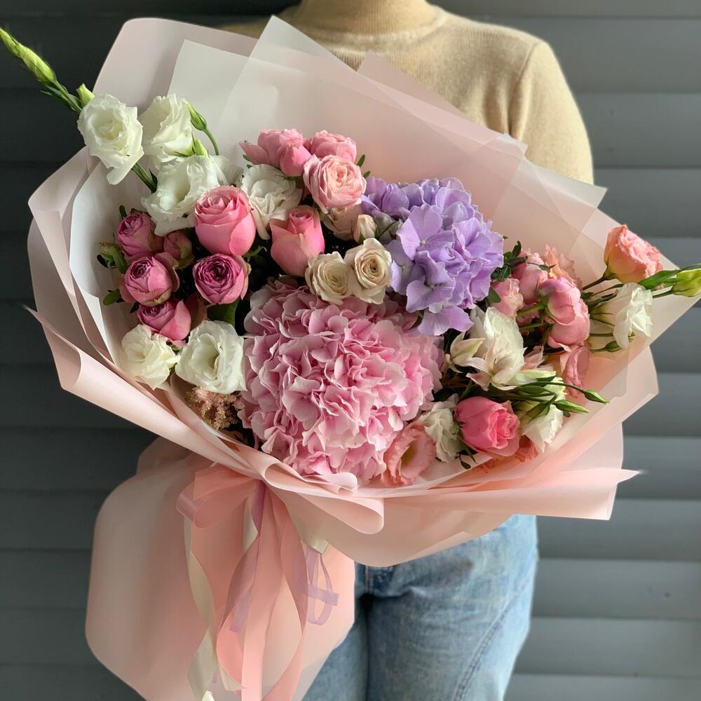 Гортензии, Кустовые розы, Лизиантусы, Пионовидные розы, Розы