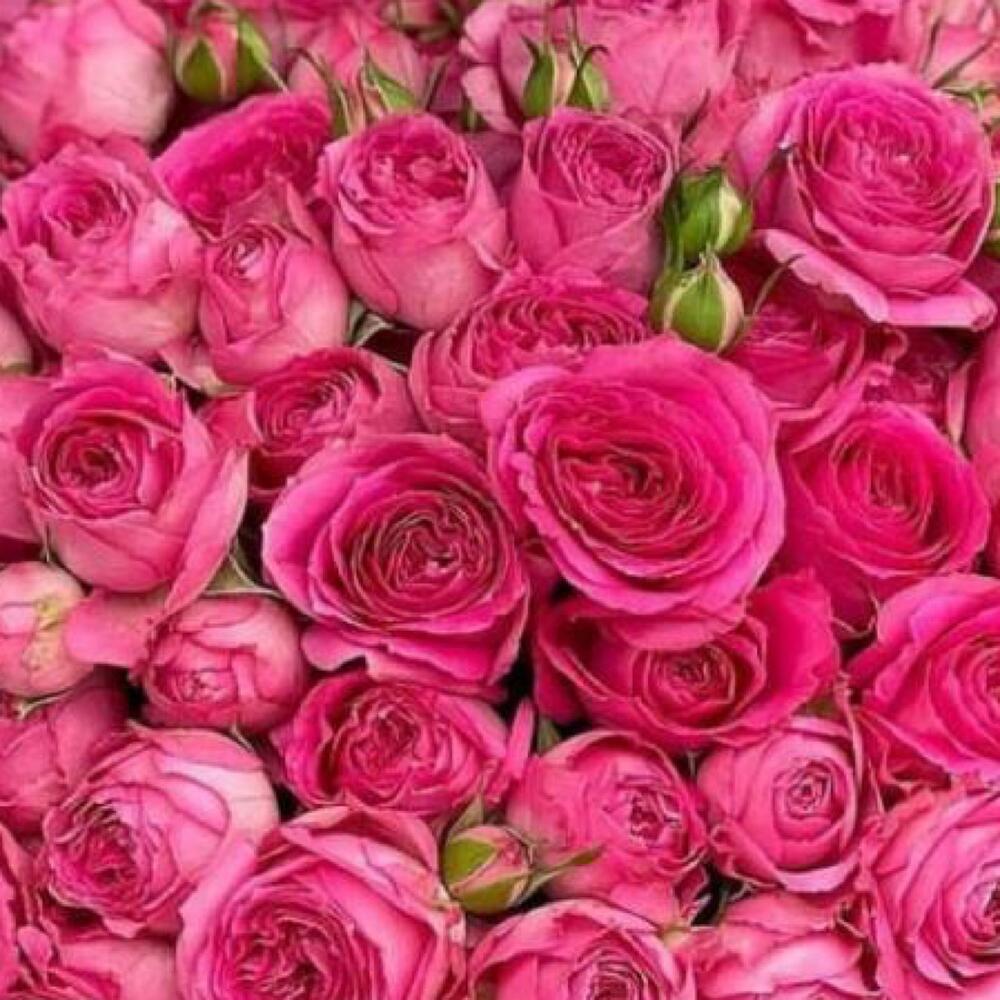 розовые кустовые розы – 51 шт.Упаковка дизайнерская – 2 шт.Лента атласная – 2 шт.Открыточка с вашими пожеланиями – 1 шт.хорошее настроение – 100 шт.инструкция по уходу за цветами – 1 шт.коробка переноска – 1 шт.Кризал – 1 шт.