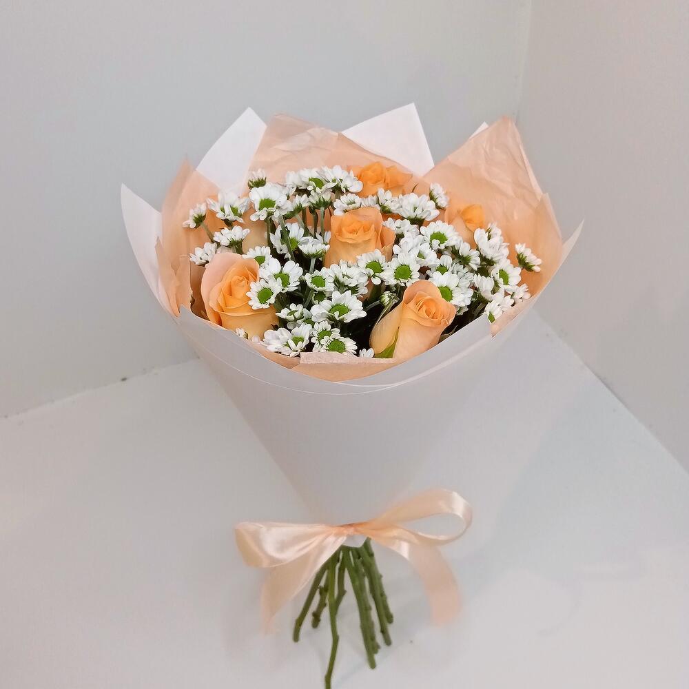 Букет из персиковых роз с Сантини