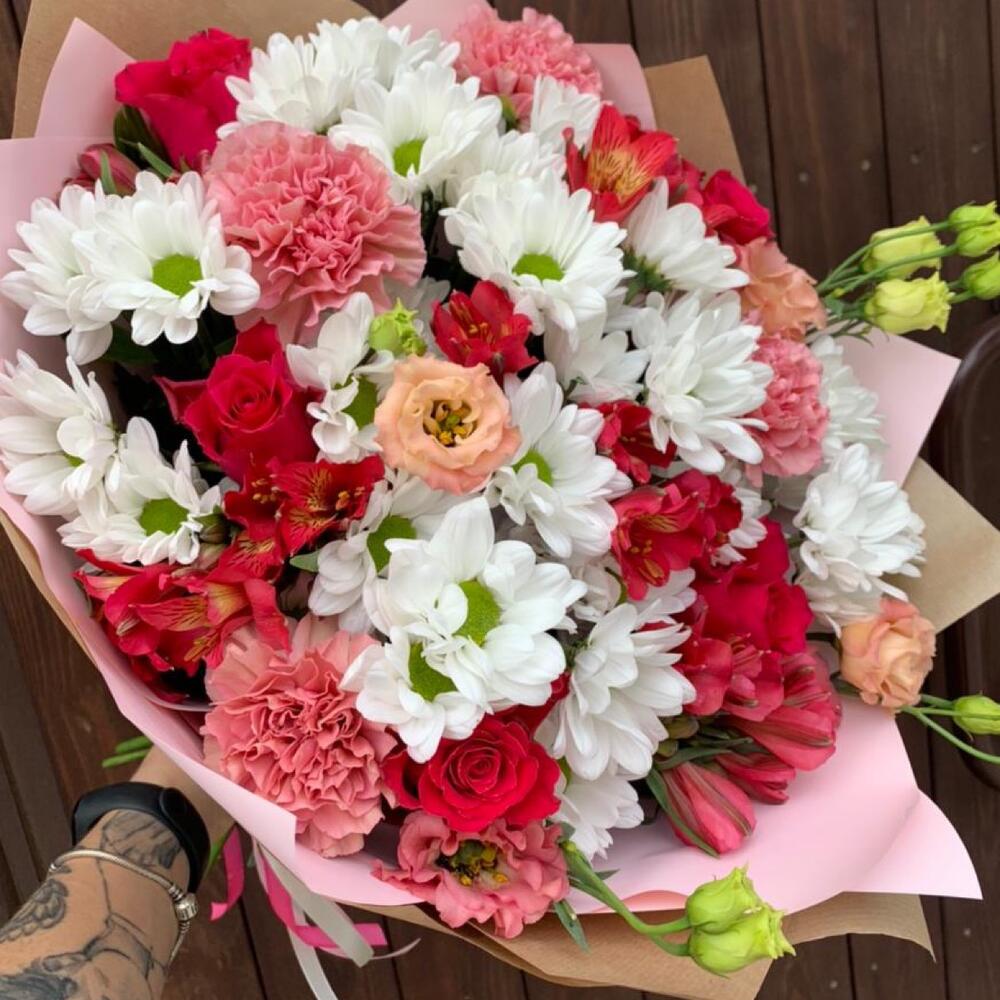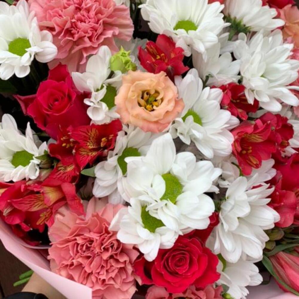 Категорий: Альстромерии, Гвоздики, Кустовые розы, Лизиантусы, Розы, Хризантемы