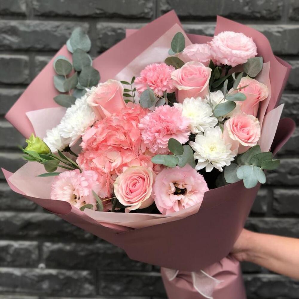 Гвоздики, Кустовые розы, Пионовидные розы, Розы