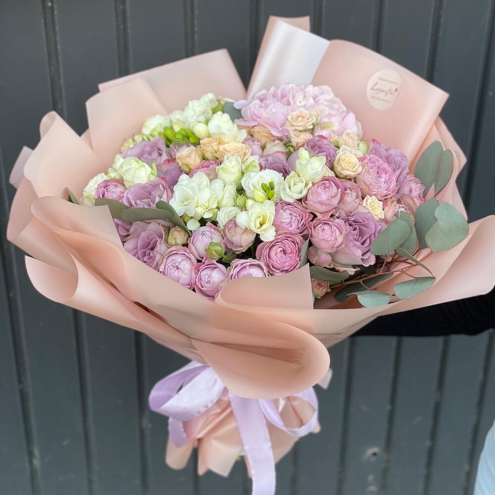 Кустовые розы, Лизиантусы, Пионы, Розы, Хризантемы