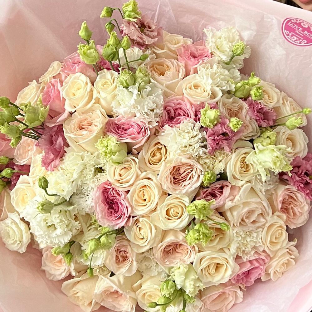 Категории: Гвоздики, Лизиантусы, Розы
