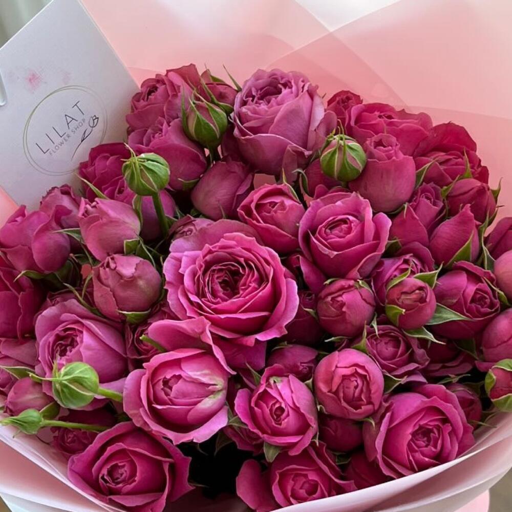 Упаковка дизайнерская – 1 шт. Открыточка с вашими пожеланиями – 1 шт. инструкция по уходу за цветами – 1 шт. Misty Bubbles пионовидная роза – 9 шт.