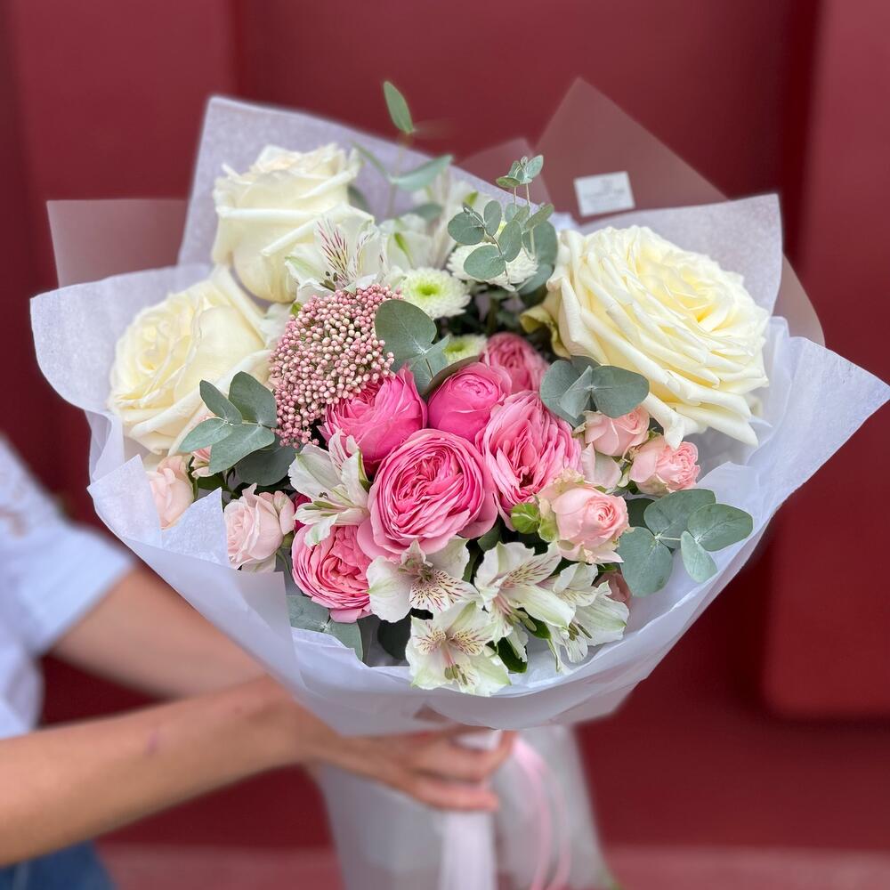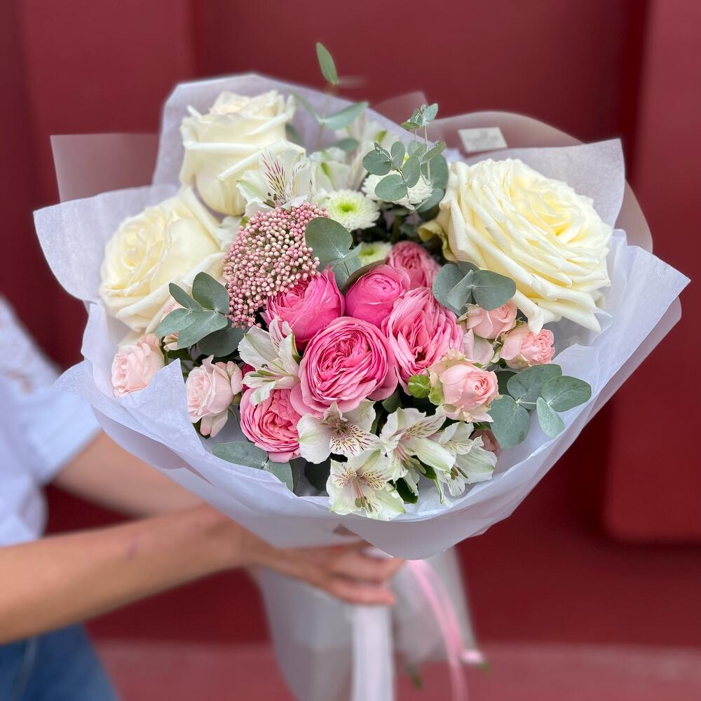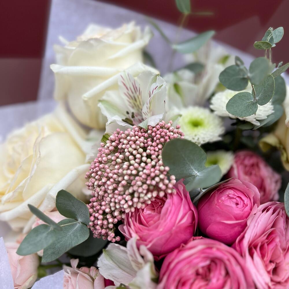 Гвоздики, Кустовые розы, Пионовидные розы, Розы