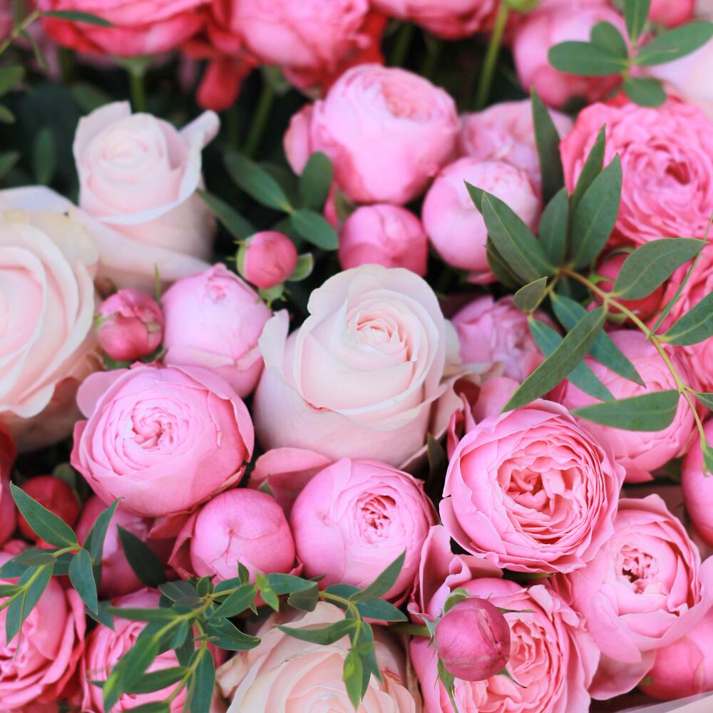 Гортензии, Кустовые розы, Лизиантусы, Пионовидные розы, Розы