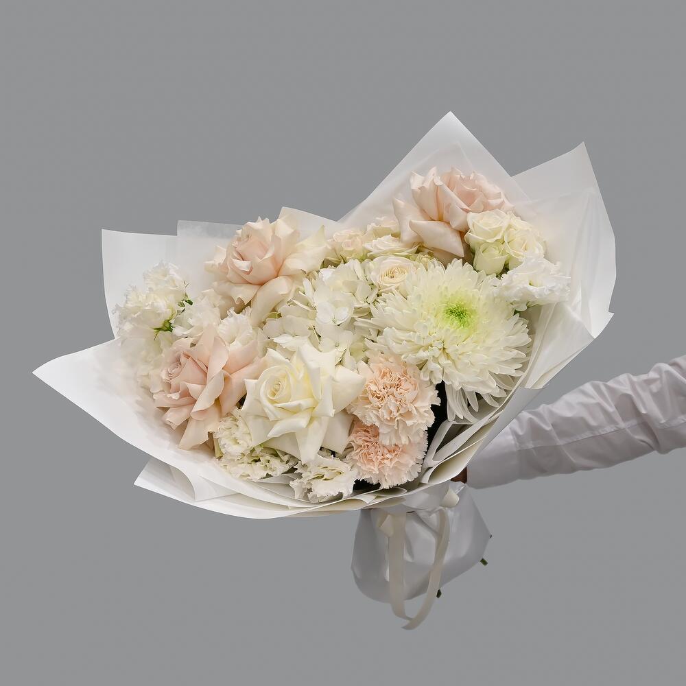 Категорий: Гвоздики, Гортензии, Кустовые розы, Лизиантусы, Розы, Хризантемы