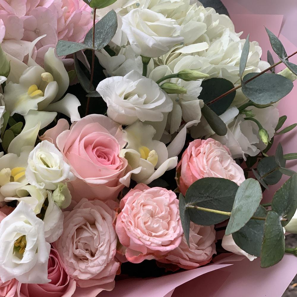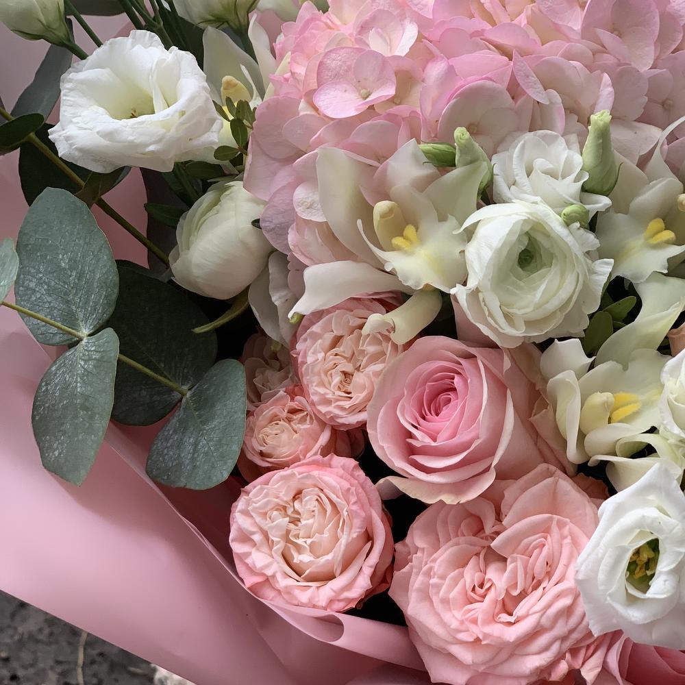 Гвоздики, Кустовые розы, Лизиантусы, Пионовидные розы, Розы
