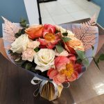 Букет с коралловыми пионами и розами